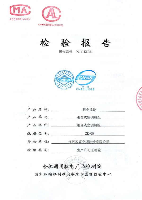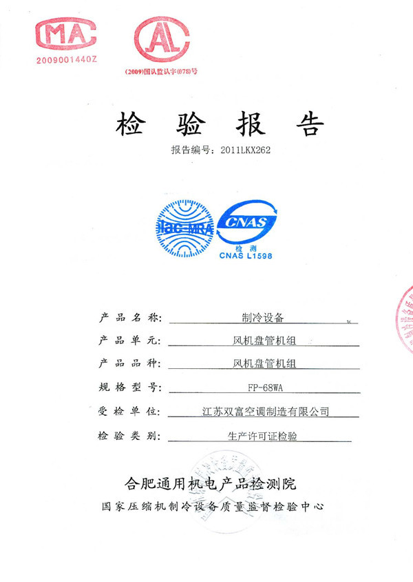 | 風(fēng)機盤管機組檢驗報告 | 組合式空調(diào)機組檢驗報告 |