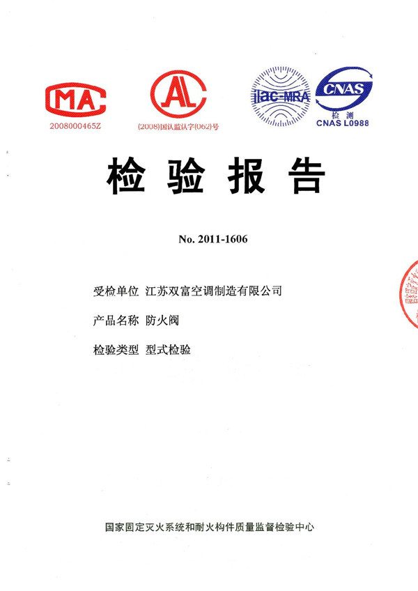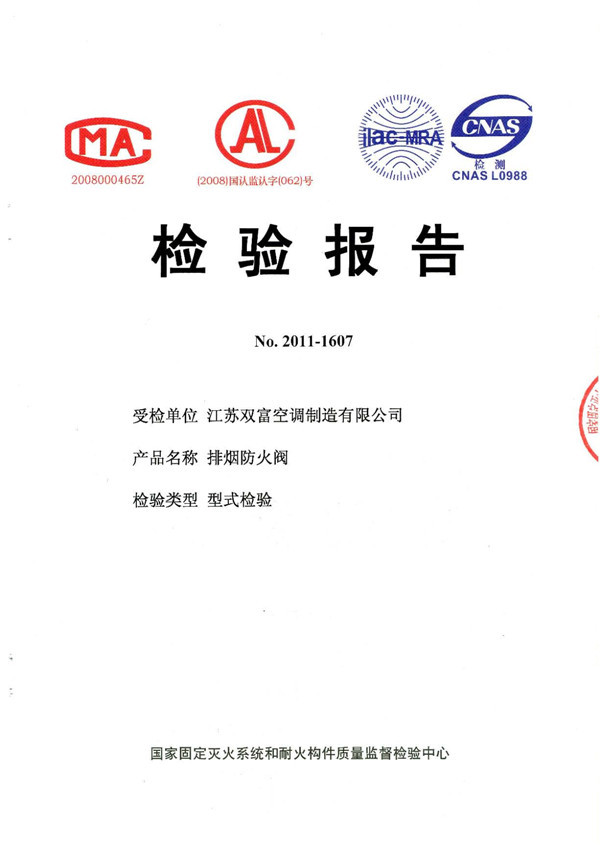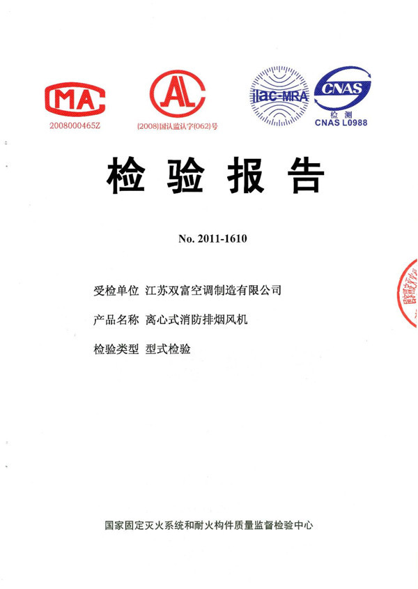 | 排煙防火閥檢驗報告 | 離心式消防排煙風(fēng)機檢驗報告 |