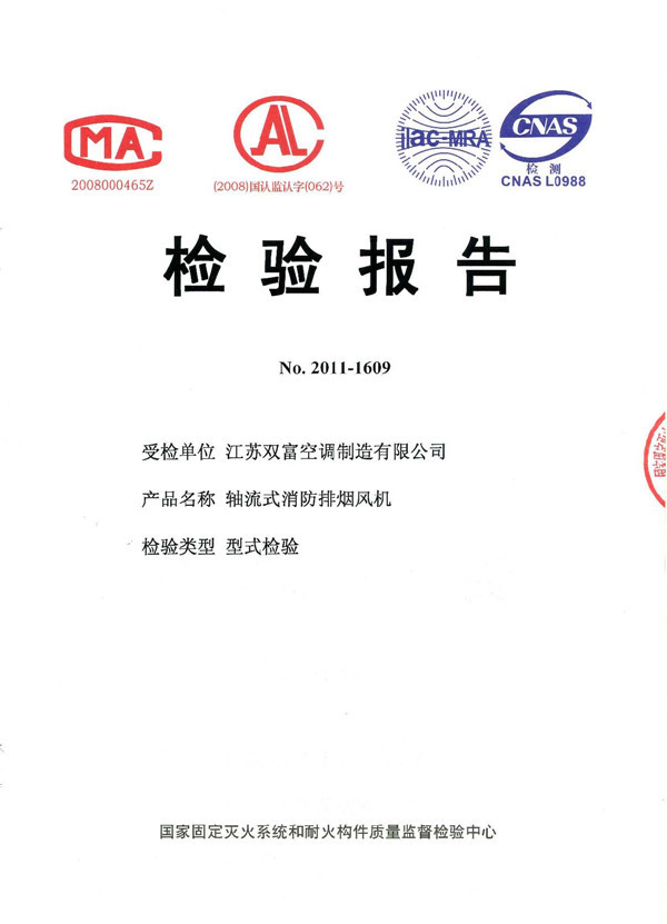 | 軸流式消防排煙風(fēng)機檢驗報告 | |