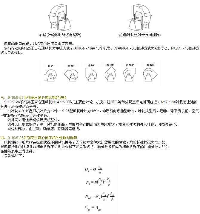 二、9-19/9-26系列高壓離心通風(fēng)機(jī)的型式